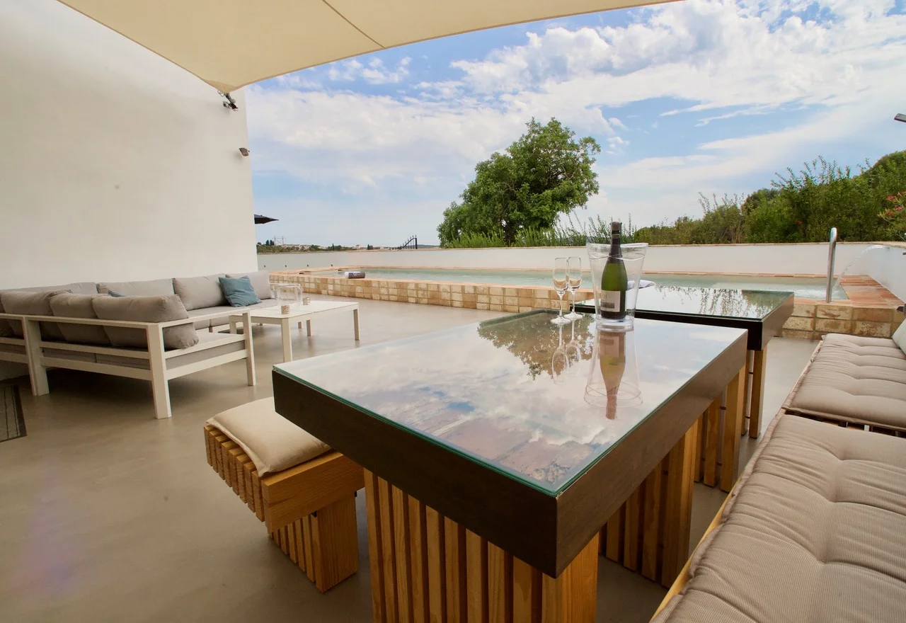 Wonderful delicate light blue pool on the main terrace